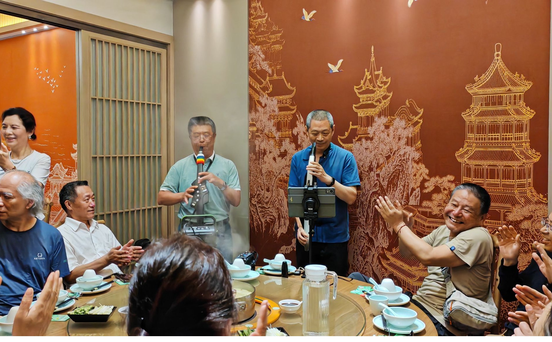 才艺展示小组,老同志们进行了才艺展示,有唱歌、舞蹈、诗歌朗诵、黑管演奏,原学校副校长陈文昆为大家献上了一曲悠扬的黑管演奏。大家互相欣赏、交流,气氛温馨而融洽。